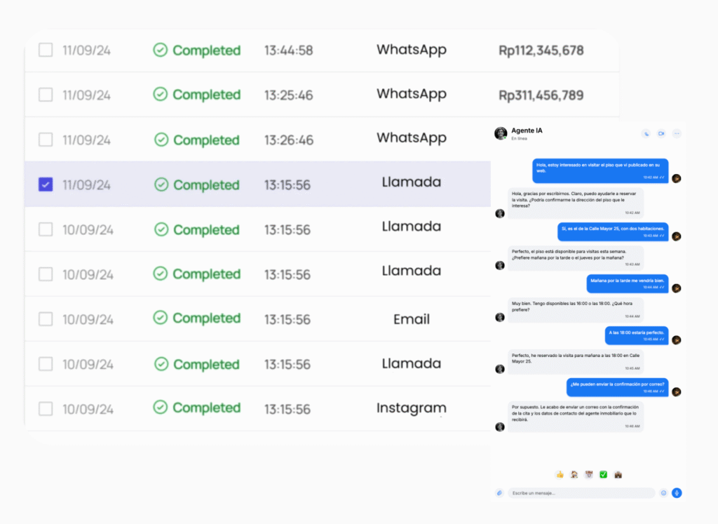 Un Agente IA es como un empleado virtual que prospecta, responde y sigue a tus clientes potenciales en todos los canales (llamadas, WhatsApp, Instagram, webchat, email). Está entrenado con la información de tu negocio y trabaja 24/7, sin descanso.